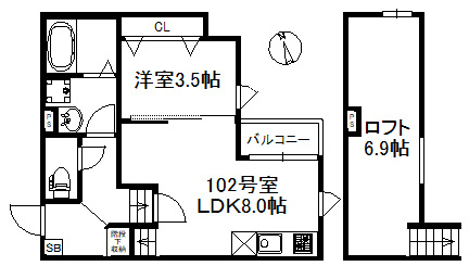 - 2人入居可 / カップル向け / 女性向け / 新婚さん向け / 室内洗濯機置場 / フローリング / ロフト付き / バルコニー / プロパンガス / 公営水道 / 公共下水 / 電気有 / 駐輪場 / ガスコンロ / コンロ2口以上 / システムキッチン / バス・トイレ別 / 追焚機能浴室 / 浴室乾燥機 / 温水洗浄便座 / 洗面台 / 洗髪洗面化粧台 / シャワー / 独立洗面台 / ユニットバス / 浴槽 / エアコン / シューズボックス / 収納豊富 / CS / BS / インターネット対応 / ネット使用料無料 / オートロック / TVモニタ付インターホン / 複層ガラス / 防犯カメラ / 角部屋